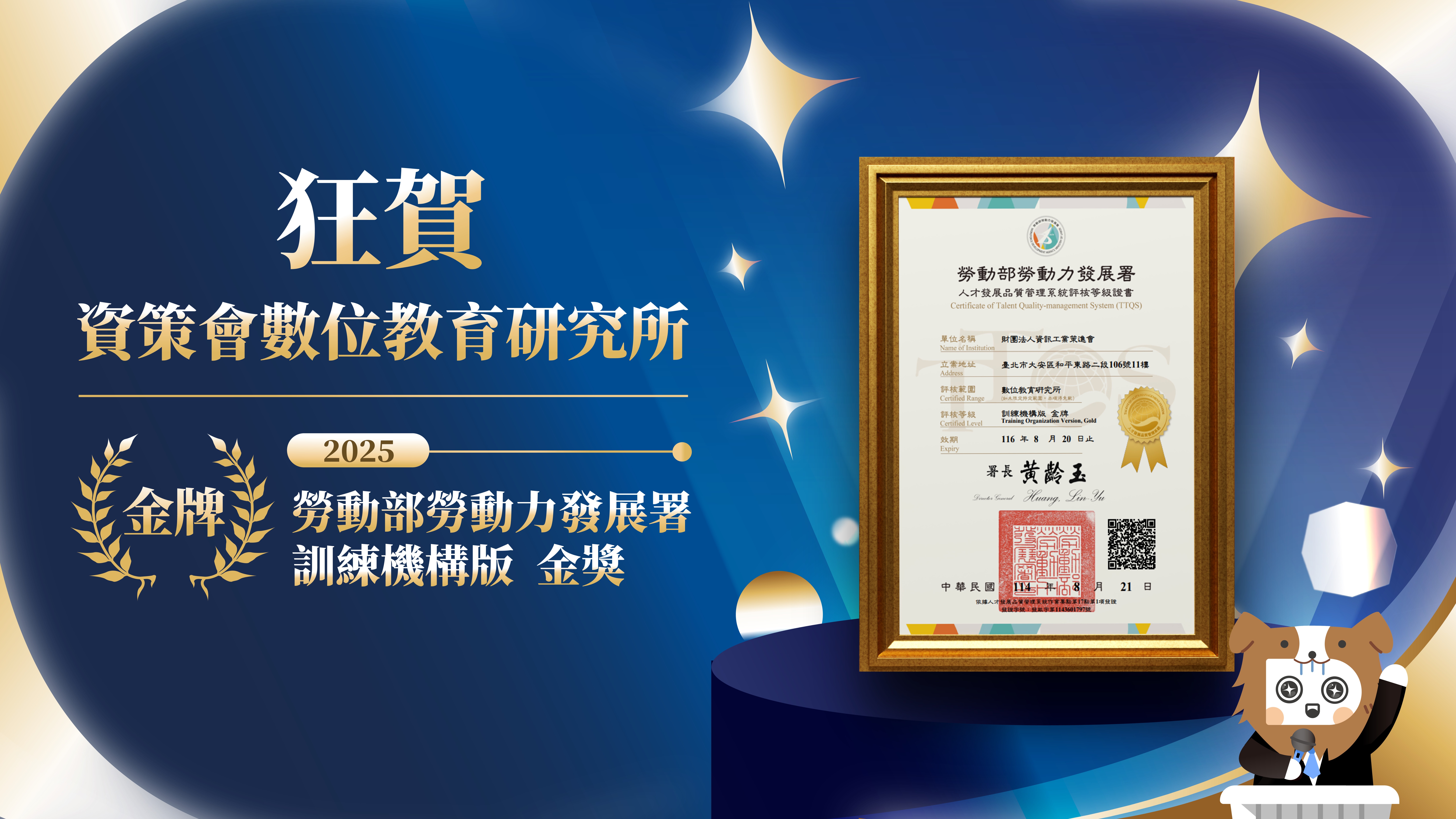 為推動AI人才培育,數發部數產署積極推動「人工智慧技術服務機構能量登錄」,其中資策會近日已通過並獲核定為「人工智慧技術教育訓練」單位,象徵AI教育與認驗證機制,已獲政府認可,成為產業與民眾可信賴的AI能力判定依據。 「人工智慧...(繼續閱讀)