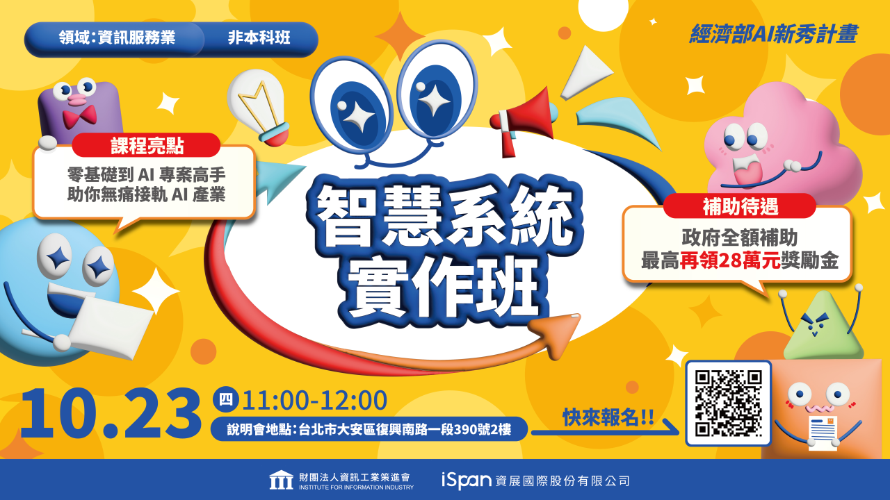 10/23(四)實體說明會 報名連結 https://www.ispan.com.tw/longterm/JPAIIST/