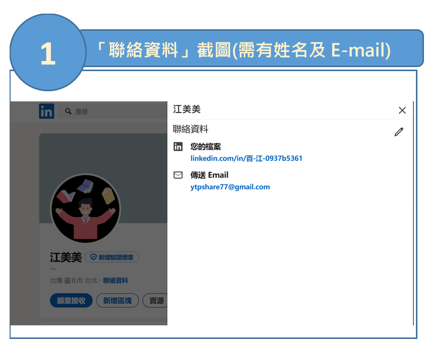 ⭐ STEP 1 截圖「聯絡資料」,畫面包含個人姓名及Email