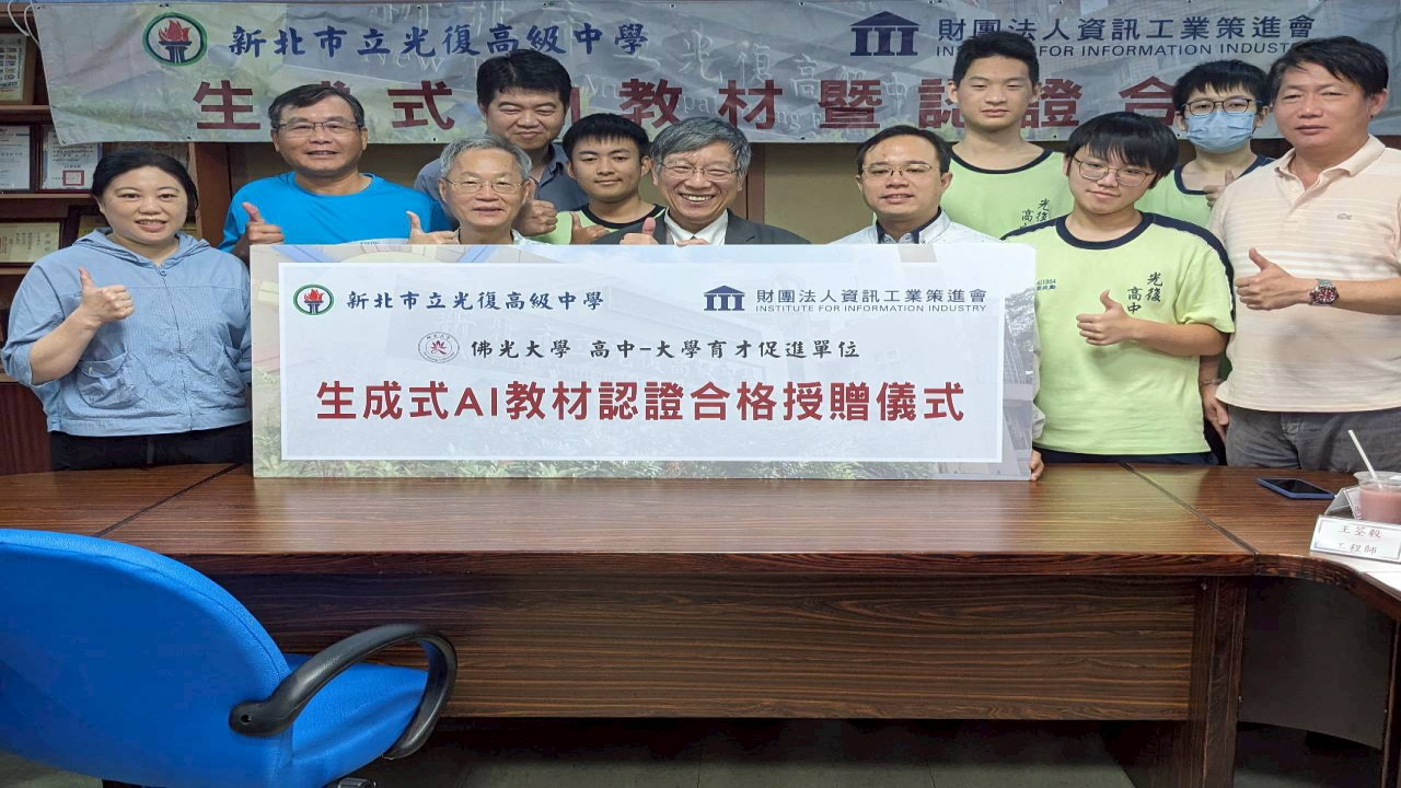 財團法人資訊工業策進會數位教育研究所於 4 月 15 日與光復高中合作,完成全臺首批高中生「生成式 AI 能力認證」授證。此認證旨在將人工智慧應用技能向下扎根,協助學生提早建立面對未來挑戰的數位基礎。